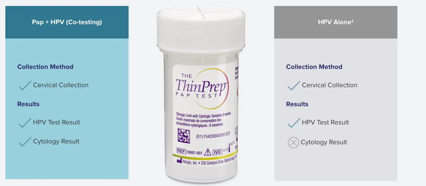 تفاوت در نتایج است- در روش HPV بهتنهایی، با وجود استفاده از همان نمونهگیری، اطلاعات کمتری دریافت میکنید. نمونهها میتوانند در محیطهای مورد تأیید FDA برای سیتولوژی مبتنی بر مایع، مانند تست پاپ تینپرپ (ThinPrep Pap Test) جمعآوری شوند.